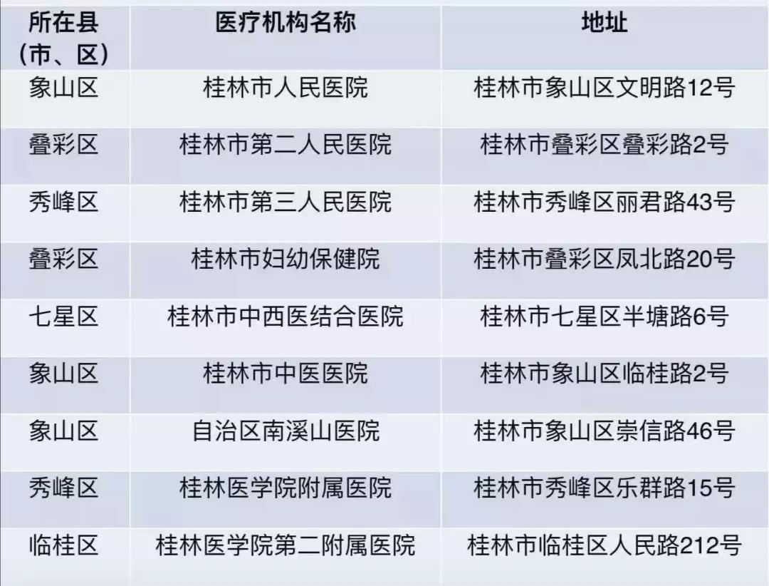 桂林市設(shè)有發(fā)熱門診的醫(yī)療機(jī)構(gòu)名單