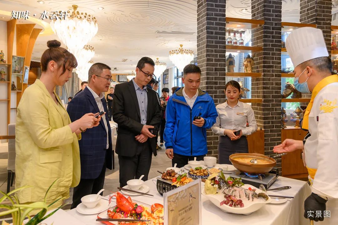 七星區(qū)副區(qū)長(zhǎng)文仆先生、副區(qū)長(zhǎng)劉春吉先生進(jìn)行了一家家的探店:主打漓江菜的桂林首家以本土文化為主題的創(chuàng)意餐廳知味·水云軒,與眾不同的新時(shí)尚餐飲味上柴煮魚,來自大瑤山的味道觀山瑤,現(xiàn)場(chǎng)打卡特色佳肴。由漁坊多個(gè)商家合作打造的長(zhǎng)桌宴,數(shù)十道菜品一字排開,應(yīng)接不暇的饕餮美食,讓七星天團(tuán)化身“吃貨天團(tuán)”,大家紛紛表示面對(duì)美食誘惑,自己都看餓了!