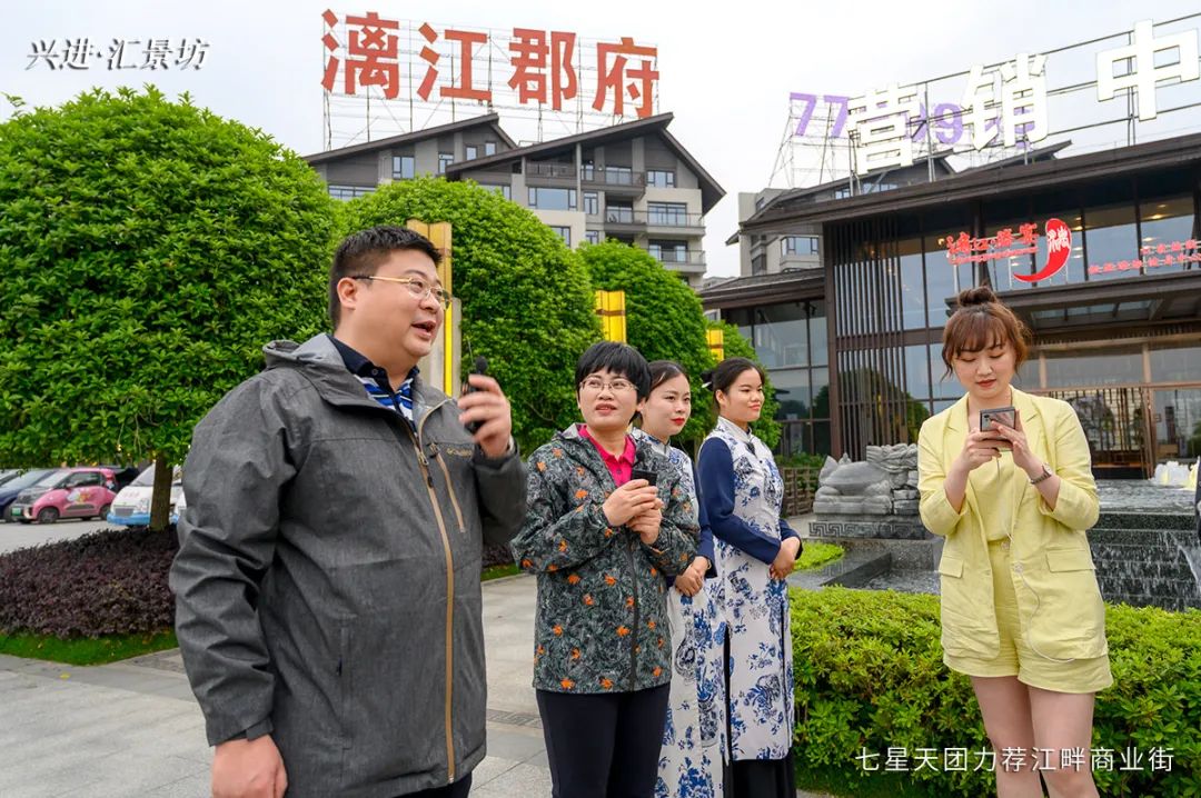 七星天團(tuán)來到興進(jìn)·匯景坊,為這里的美景驚嘆,七星天團(tuán)新晉“帶貨達(dá)人”副區(qū)長(zhǎng)胡凱先生、副區(qū)長(zhǎng)王海燕女士還向大家特別推薦了興進(jìn)·匯景坊商業(yè)街:
