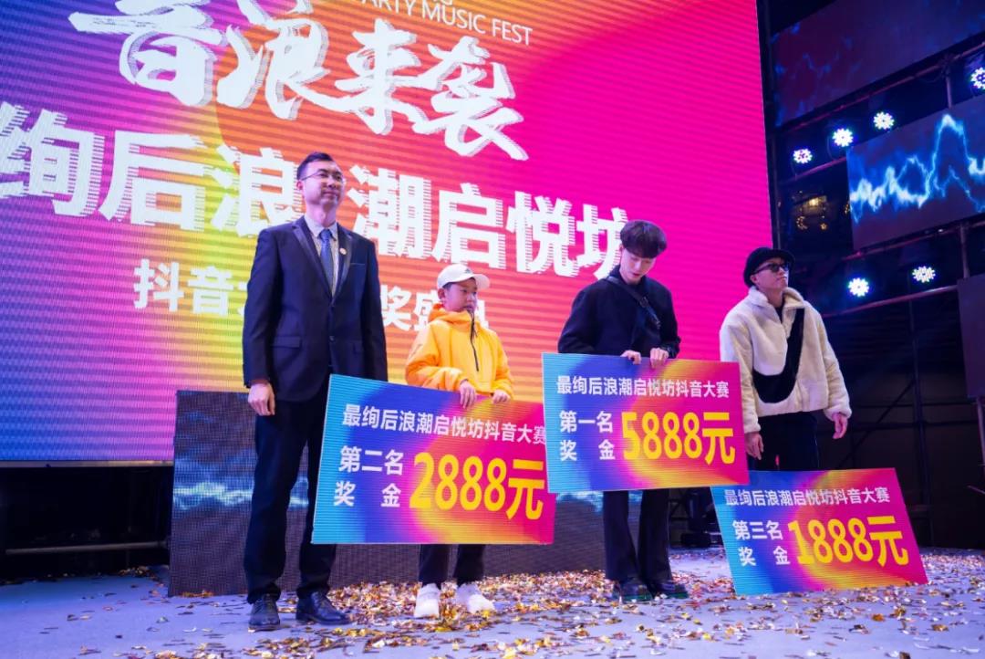 潮悅電音節現場,還舉行了#最絢后浪潮啟悅坊##舞甲天下#抖音視頻挑戰賽的頒獎儀式,該活動自上線來得到眾多街舞達人的關注和參與,話題累計播放量突破217w次!