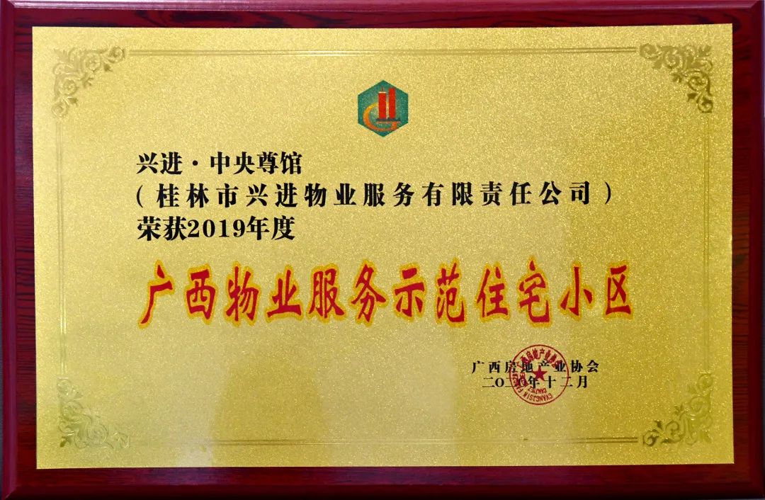 在此次物業管理行業大會上,興進·漓江郡府金桂府、興進·中央尊館喜獲2019年度"廣西物業服務示范住宅小區"榮譽稱號。