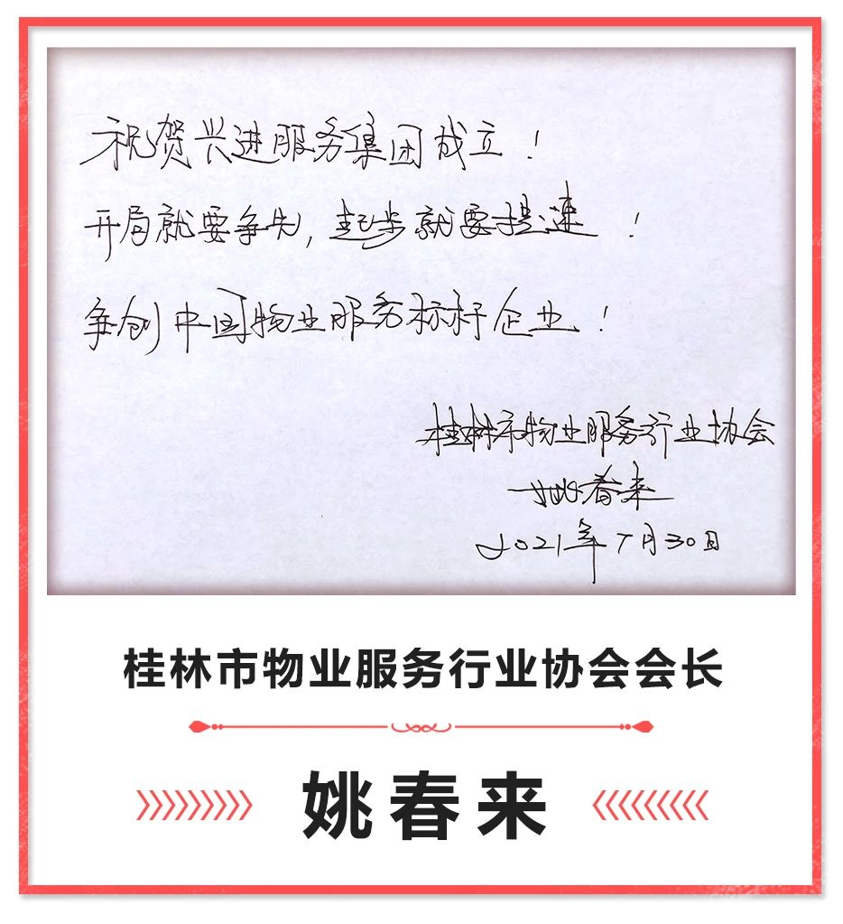 2021年8月1日,桂林市興進物業(yè)服務(wù)有限責(zé)任公司正式更名為廣西興進物業(yè)服務(wù)集團有限責(zé)任公司,在興進物業(yè)成立20年之際,象征著又朝公司"5年計劃"邁進一步。
