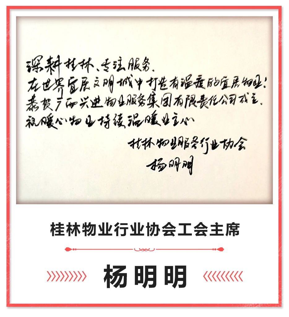2016年興進物業(yè)不止步,全方位創(chuàng)新管理模式。2018年,開設(shè)"六興"服務(wù),陸續(xù)成立興管家、興小廚、興家政、興學(xué)院、興中介、興學(xué)堂。為提升服務(wù)品質(zhì),2019年,漓江壹號、漓江郡府、南寧珺府陸續(xù)加入金鑰匙國際聯(lián)盟。