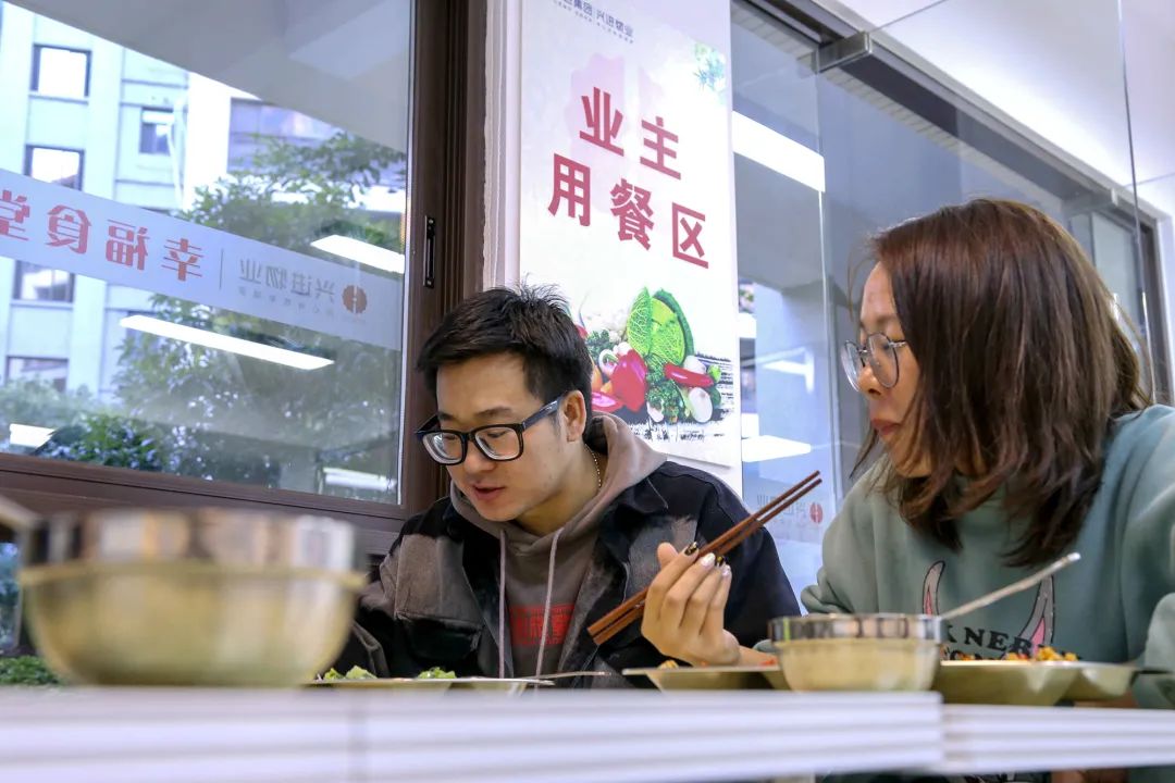 自從有了業主食堂,她的小小心愿得以實現,"我們的食堂菜品不僅種類豐富,而且足夠營養健康,大家吃得很放心。在吃飯的時候還能與鄰居聊天,感謝興進物業為我們營造這樣的溫馨食堂!"