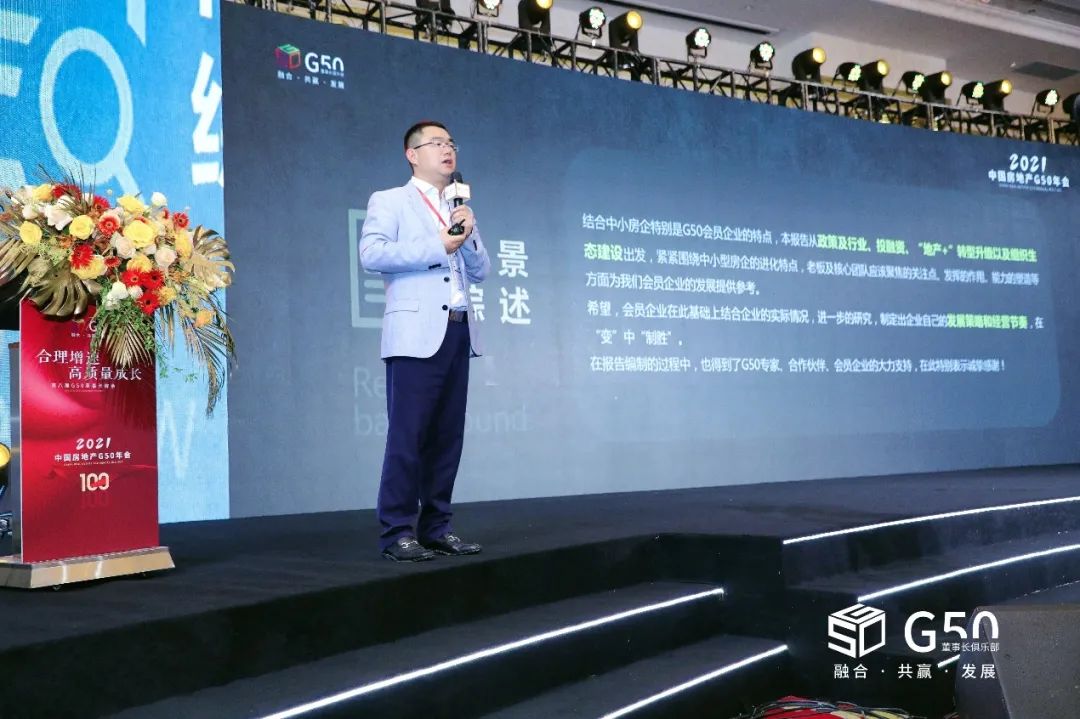 大會現場,G50 商學院院長、博志成總裁吳會鵬發布了《G50企業發展報告》,這是G50專家智庫落地的成果之一,從政策、行業、投融資,以及地產+的轉型升級,組織生態的建設等方面展開系列研究,結合G50會員企業的特點,針對董事長和核心團隊關注的焦點,給會員企業提供值得借鑒和參考的研究,護航會員企業的持續增長。