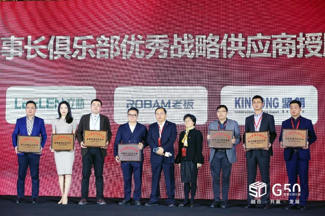 廣州光日電梯工業有限公司、九牧廚衛股份有限公司、杭州老板電器股份有限公司、廈門立林科技有限公司、深圳市泰和安科技有限公司、天津萬高電力設備有限公司、廣東堅朗建材銷售有限公司七家集采合作伙伴被授予"G50優秀戰略供應商"稱號。