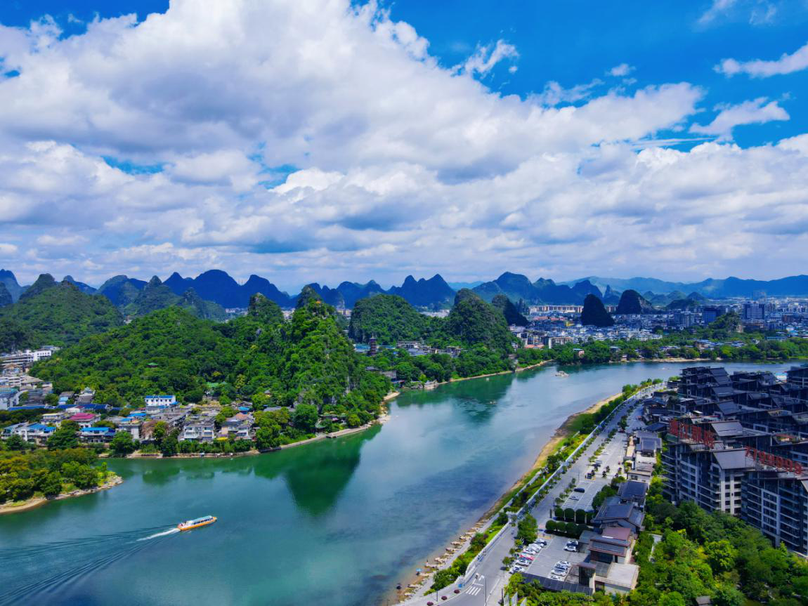 靖江王府貴脈之上,漓江與小東江匯合之處,玉帶環抱,青綠潛在,讓人不經感慨,《千里江山圖》不僅僅在畫中,也在漓江最美1公里之上。
