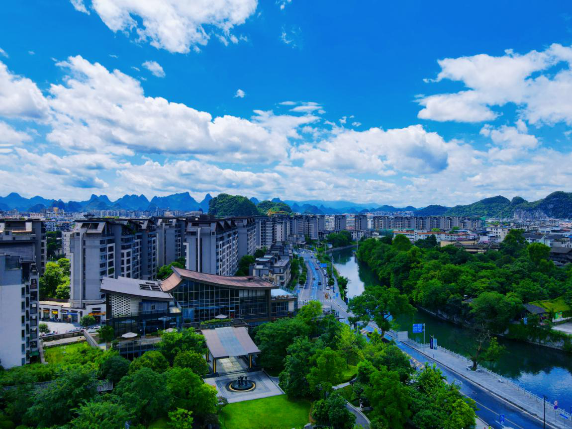 一線濱江畔,近瞰漓江詩意山水。約20000㎡匯景坊商業街、約4500㎡晟郡會館、高端餐廳漓江勝宴等奢適配套。