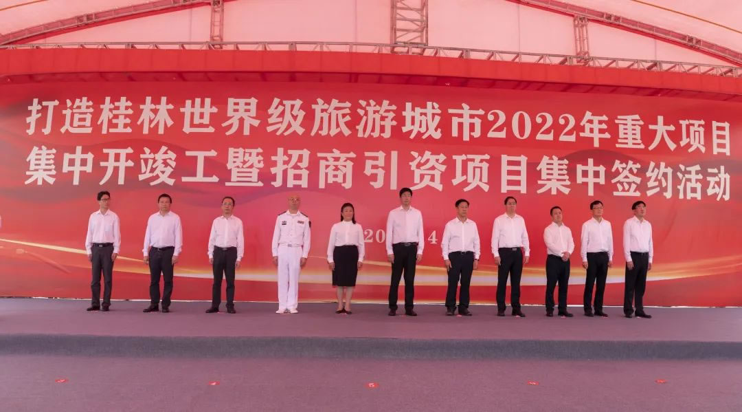 4月25日上午,由中共桂林市委員會、桂林市人民政府主辦,桂林市發展和改革委員會、桂林市投資促進局、中共桂林市臨桂區委員會、桂林市臨桂區人民政府承辦的"2022年桂林市打造世界級旅游城市重大項目集中開竣工暨招商引資項目集中簽約活動"圓滿舉行。