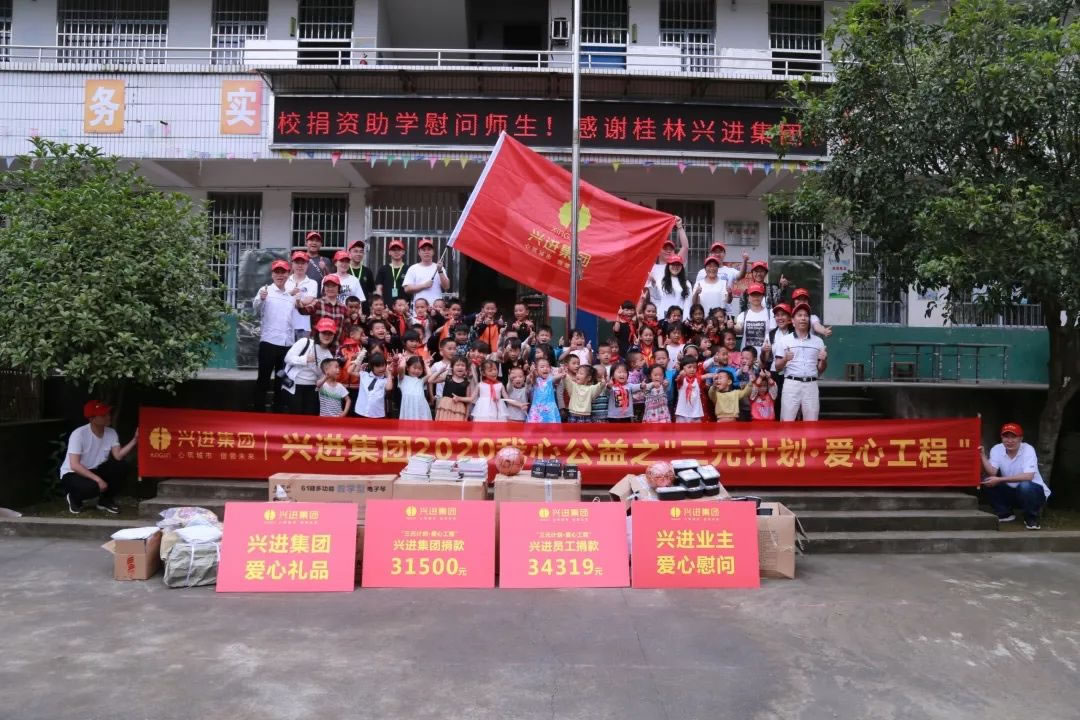 連續十年堅持資助"三元午餐·愛心工程"活動,為全州縣東山鄉白嶺小學捐款捐物;2019年,向桂林市教育發展基金會捐贈100萬元,用于支持桂林教育事業發展;2020年、2021年,向桂林中學捐贈"興進·桂林中學優秀獎學金",為學子的求學之路提供幫助。