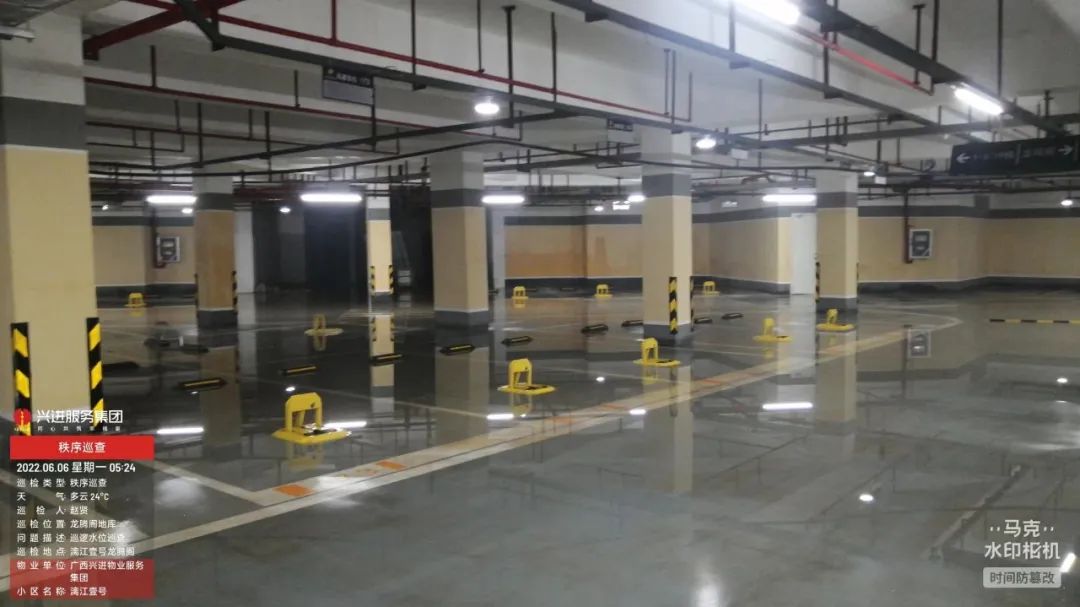 小區時刻監控市政路面及車庫積水情況,若有內澇風險提前聯系業主挪車,并做好了使用拖車為在外業主挪車的準備。巡查過程中發現某業主凌晨在外工作,家中車輛不能及時挪動,物業人員了解到情況后,4點冒著大雨驅車前往業主辦公單位拿車鑰匙,為業主愛車挪至安全區域,這一舉措獲得了興進業主一致認可,最終確保了小區車輛0損失,0泡水。