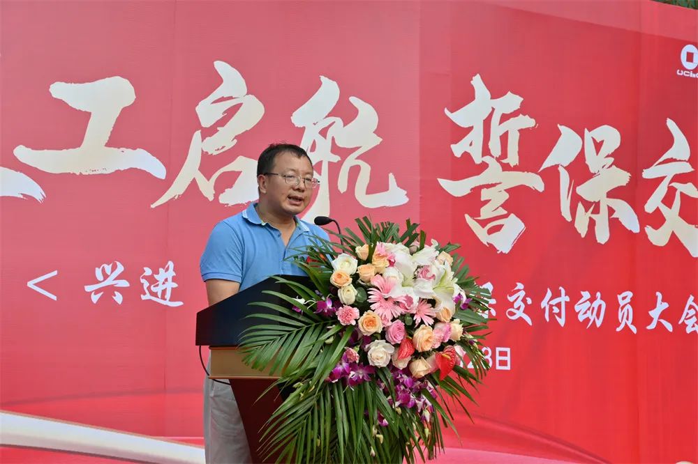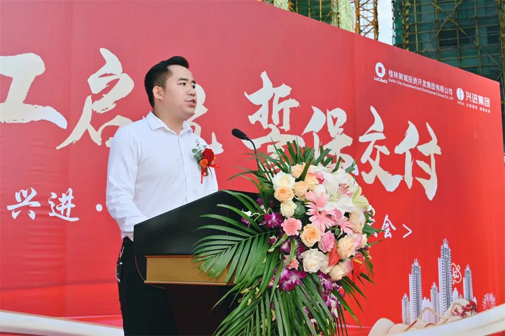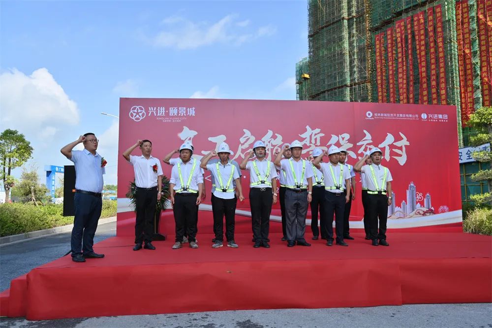 此次保交付動(dòng)員大會(huì),桂林新城投資開發(fā)集團(tuán)有限公司副總經(jīng)理鄭善華等領(lǐng)導(dǎo)代表,興進(jìn)集團(tuán)事業(yè)三部副總經(jīng)理秦達(dá)雄、客服總監(jiān)沈繼祥、興進(jìn)·頤景城項(xiàng)目總經(jīng)理?xiàng)蠲鞯阮I(lǐng)導(dǎo)代表,項(xiàng)目施工方中聯(lián)世紀(jì)代表,業(yè)主代表,渠道代表,以及媒體代表等受邀出席,共同現(xiàn)場(chǎng)見證興進(jìn)·頤景城項(xiàng)目的全面復(fù)工。