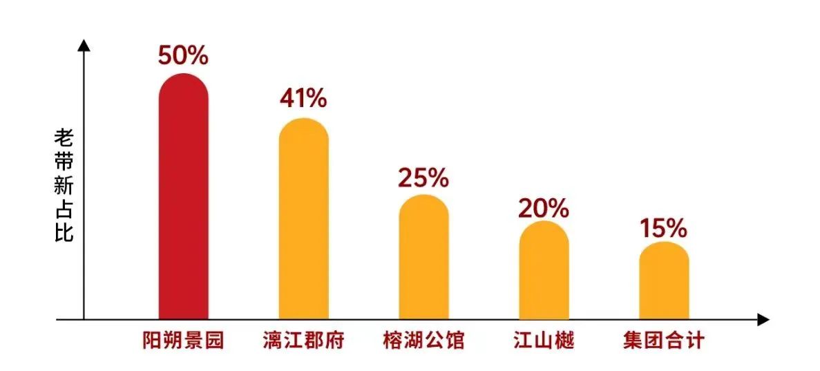 2023年上半年老帶新(含業主復購)率均超15%,單項目更有超50%的老帶新認可,數據講述用心建好房的實力與信任。