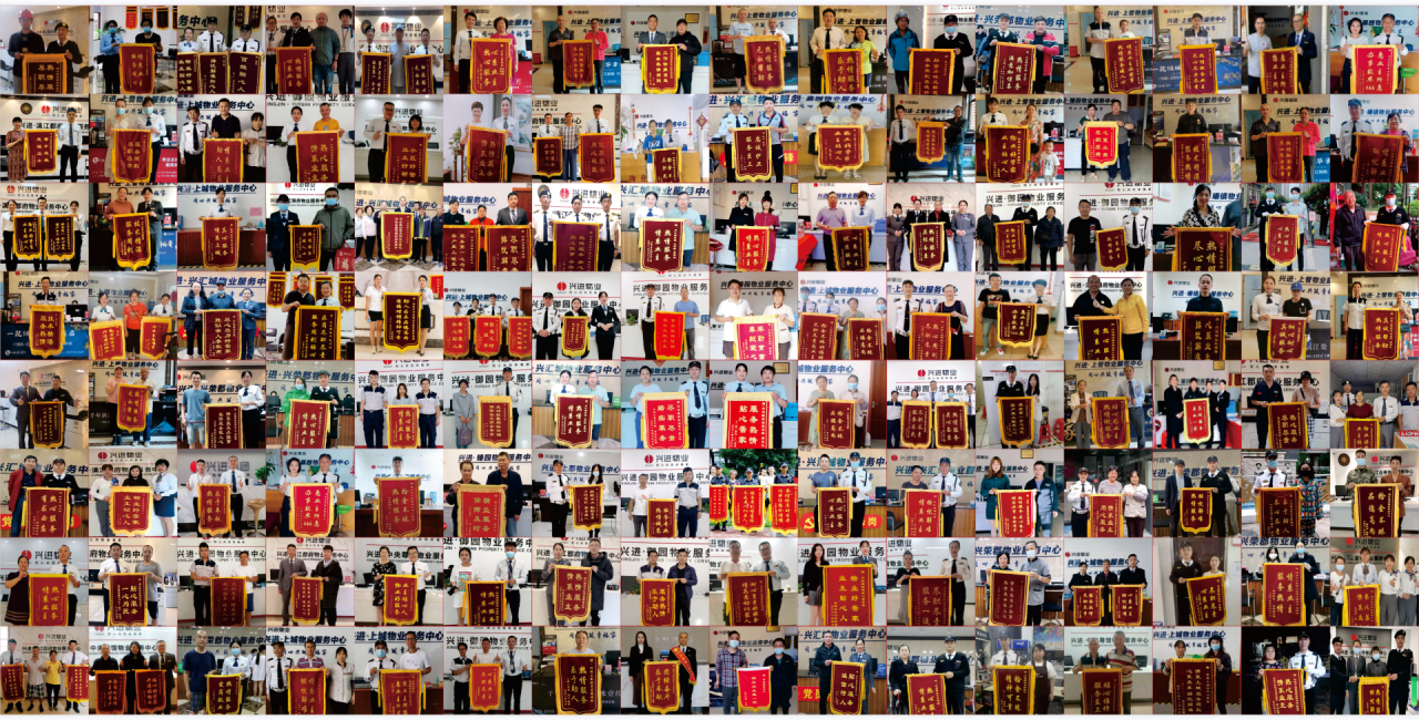 2022年,興進物業幫助業主共計17640多次,收到業主感謝信997封、錦旗1704面;2023年1-6月,興進物業累計收到業主表彰320多次,相當于每天都會收到業主1-2次的表彰。