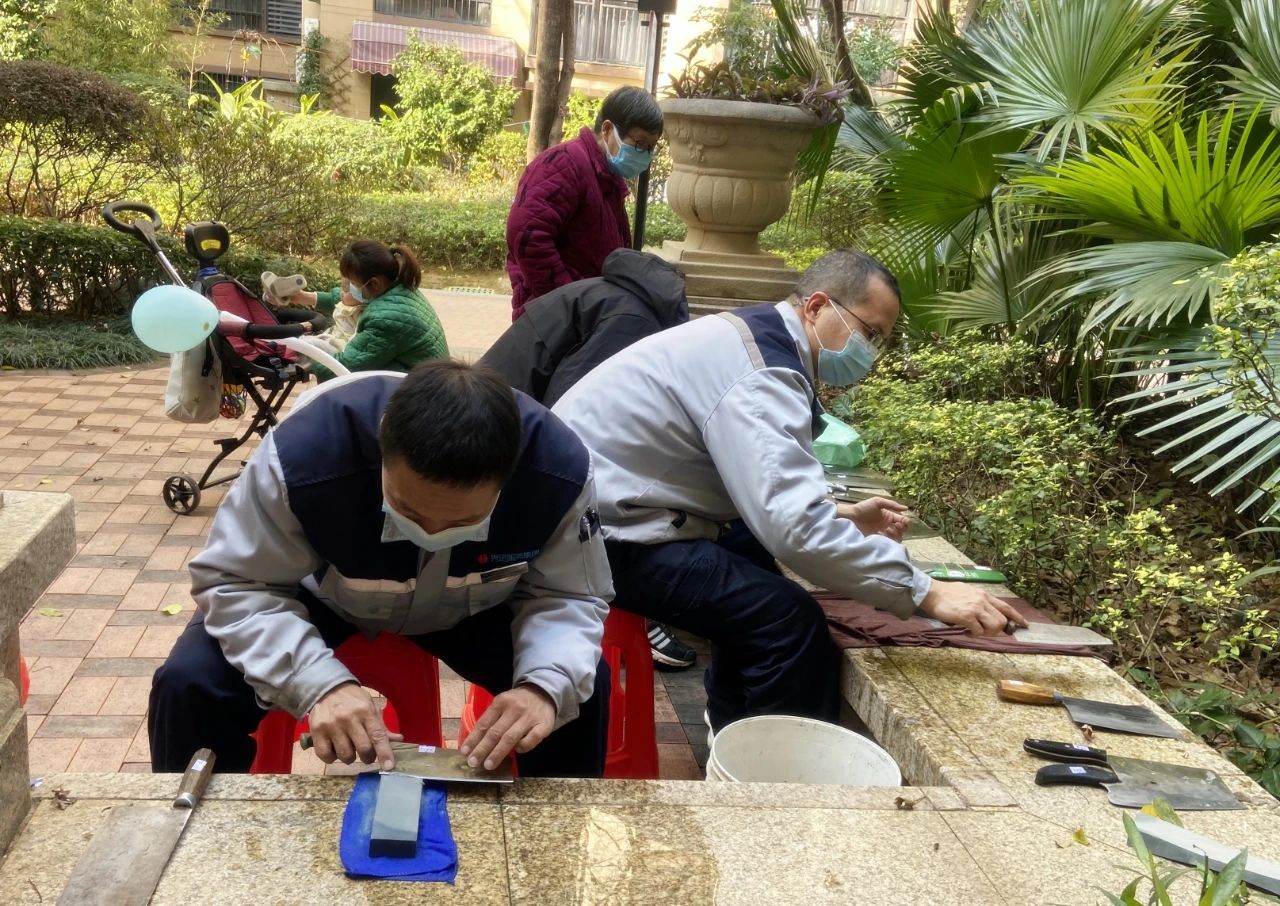 興進物業關注業主生活點滴,為業主解決磨菜刀難題,讓廣大業主在新年大顯身手做一桌豐盛的團圓宴;辭舊歲迎新年電動車清洗服務,讓愛車干干凈凈過新年。